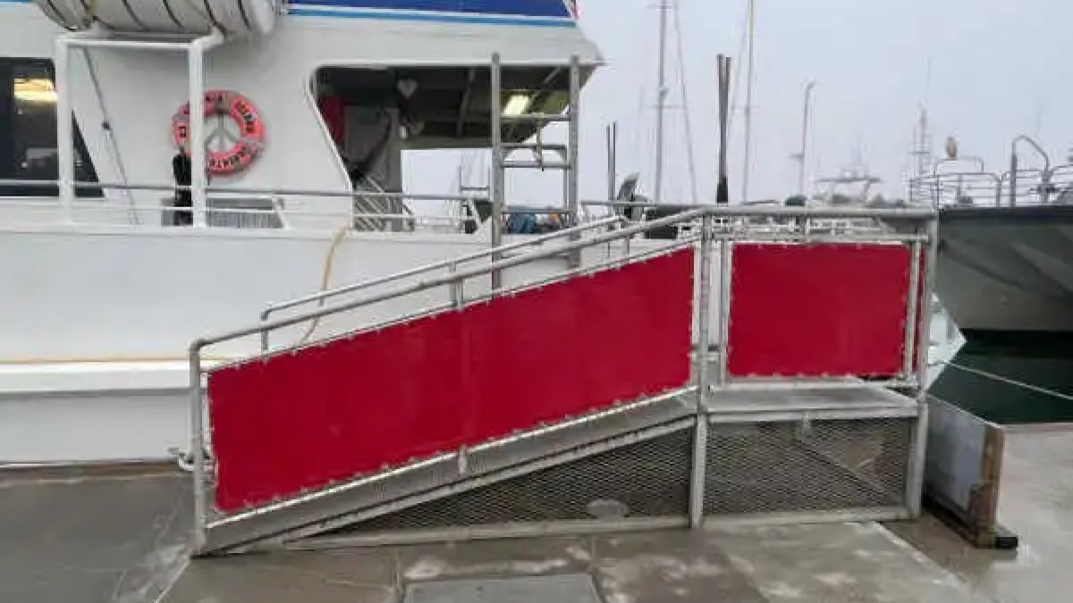 For trips leaving from our Channel Islands Harbor location in Oxnard, there is ramp access to the docks that varies in steepness depending on the tide. There are 7 steps up to the boat and 3 large steps down into the boat.
