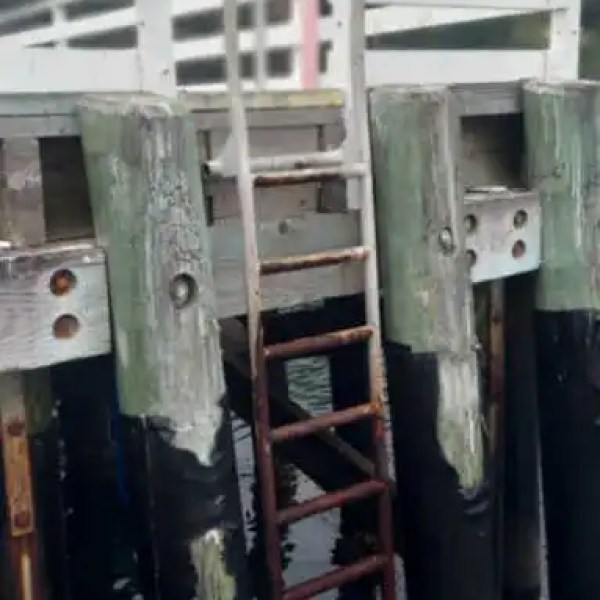 The ladder can range from 0-7 feet depending on the tide. Once on the pier, visitors must use a flat, wooden planked pier to access dirt roads and trails.